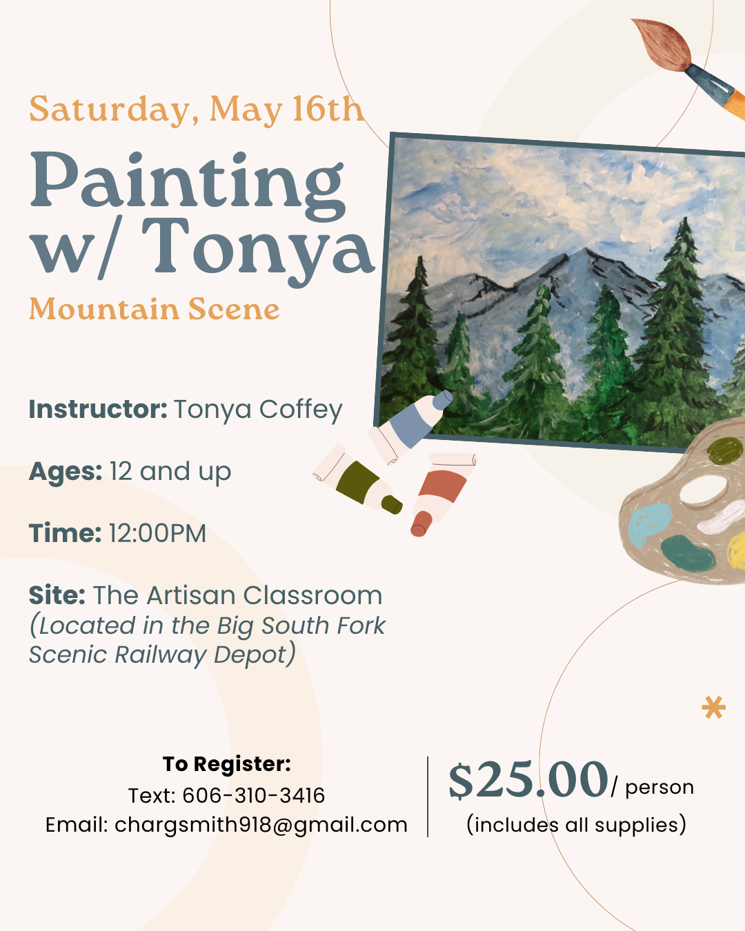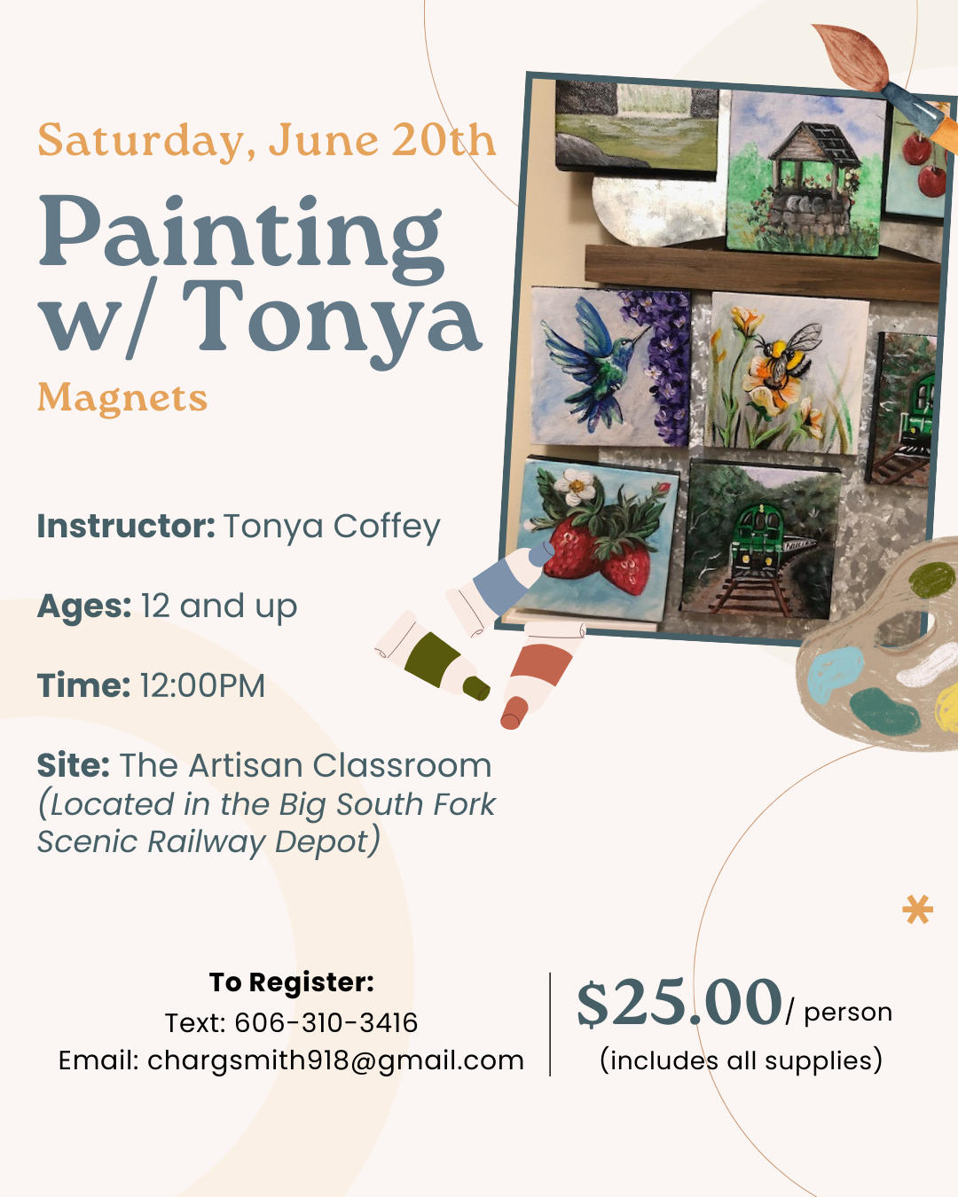 Instructors: Brenda Stulz and Beth Kilburn Class Limit: 12 To Register: Text 606-310-3416 or EMAIL chargsmith918@gmail.com
